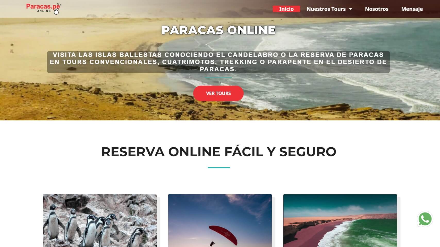 Un sitio turístico de la ciudad de Paracas con la principal característica que permite hacer las reservas online con pasarelas de pago incorporadas, Realizado con Woocommerce y Elementor integra un sistema de booking conectado a Woocommerce y cunado ser realiza una reserva, el sistema cobra automáticamente para confirmar la reserva.